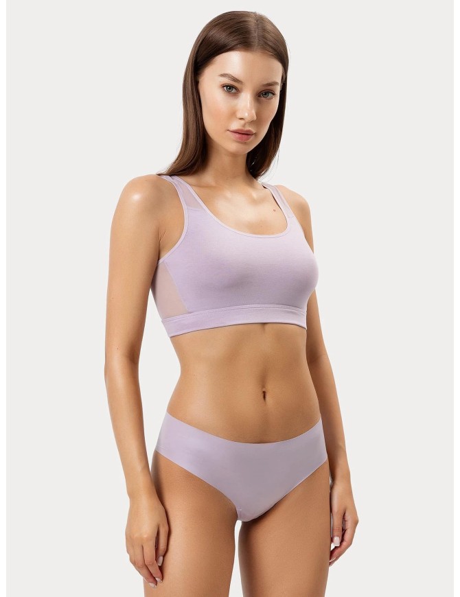 Бюстье женское из высококачественного хлопка – гипоаллергенного и приятного на ощупь. Боковые детали изделия выполнены изсетки, без боковых швов. На бретелях спереди, также идут вставки изсетки. Нижний срез бюстье обработан поясом из хлопка с внутренней резинкой для дополнительного комфорта. Идеальный вариант для спорта и отдыха. Мягкий натуральный материал отлично впитывает влагу, быстро сохнет, хорошо тянется. В таком бюстье женском без косточек очень комфортно заниматься фитнесом, йогой и шейпингом. В тон можно подобрать красивый низ из этой же коллекции. Модель представлена в нескольких цветах. Рекомендуем для девушек, которые ценят комфортное белье и лаконичные детали!