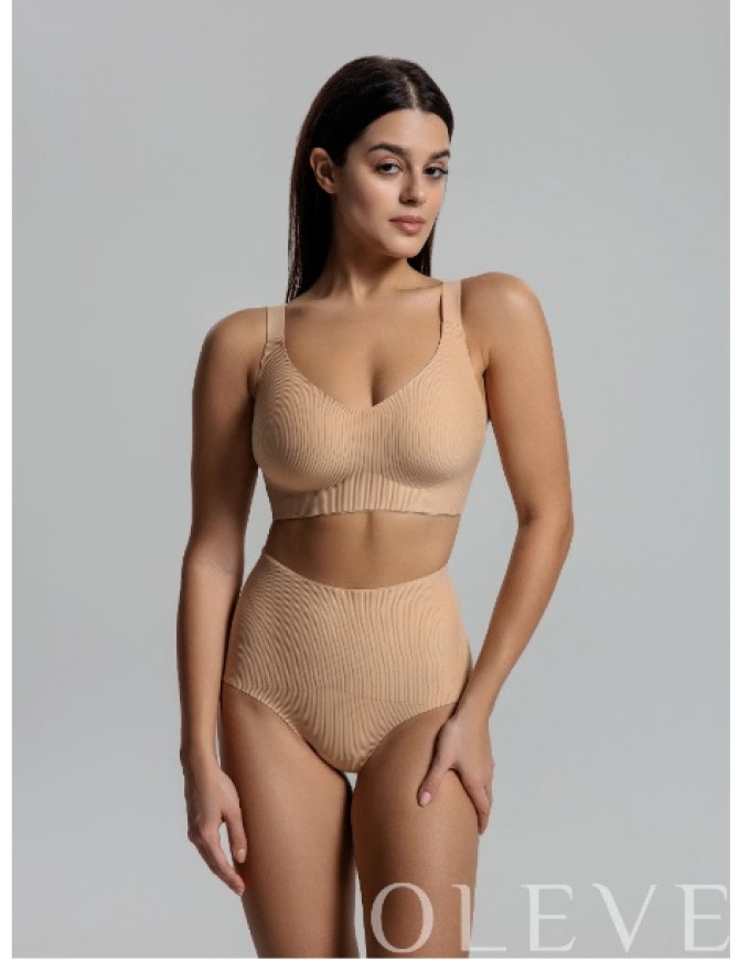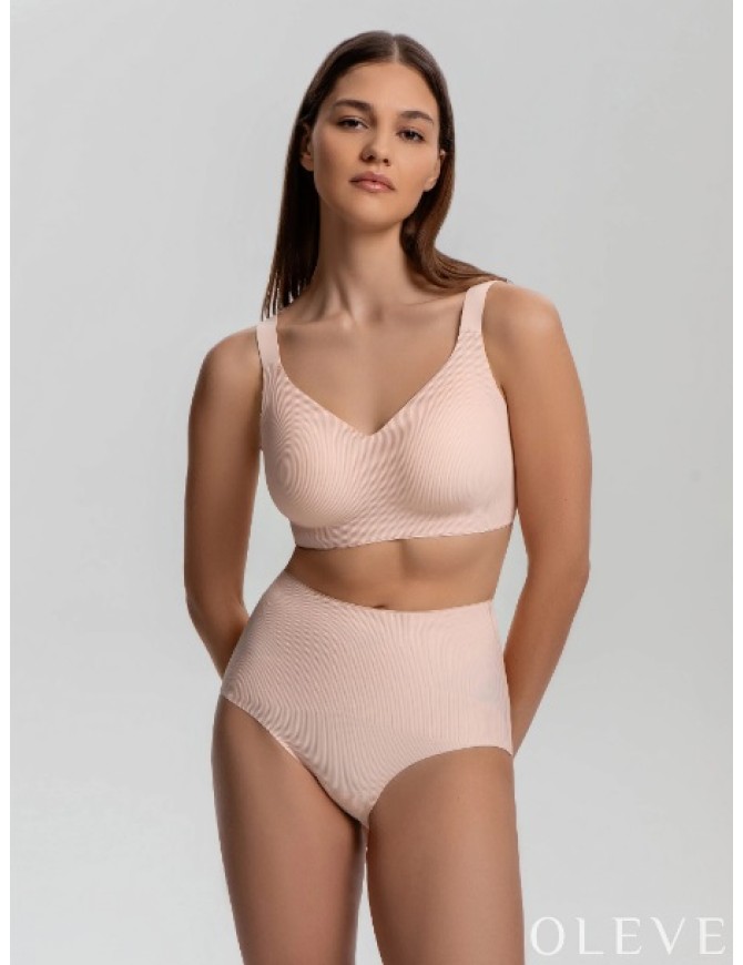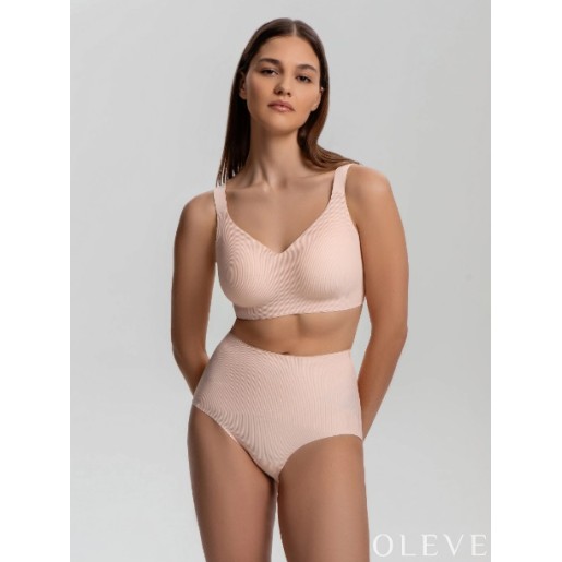 Бесшовный бюстгальтер с V-образным вырезом из микрофибры в рубчик. Силиконовые вставки создают дополнительную поддержку груди. В комплекте съёмные латексные вкладыши. Широкая спинка в форме леотард. Комфортные бретели исключают натирание и сдавливание плеч.