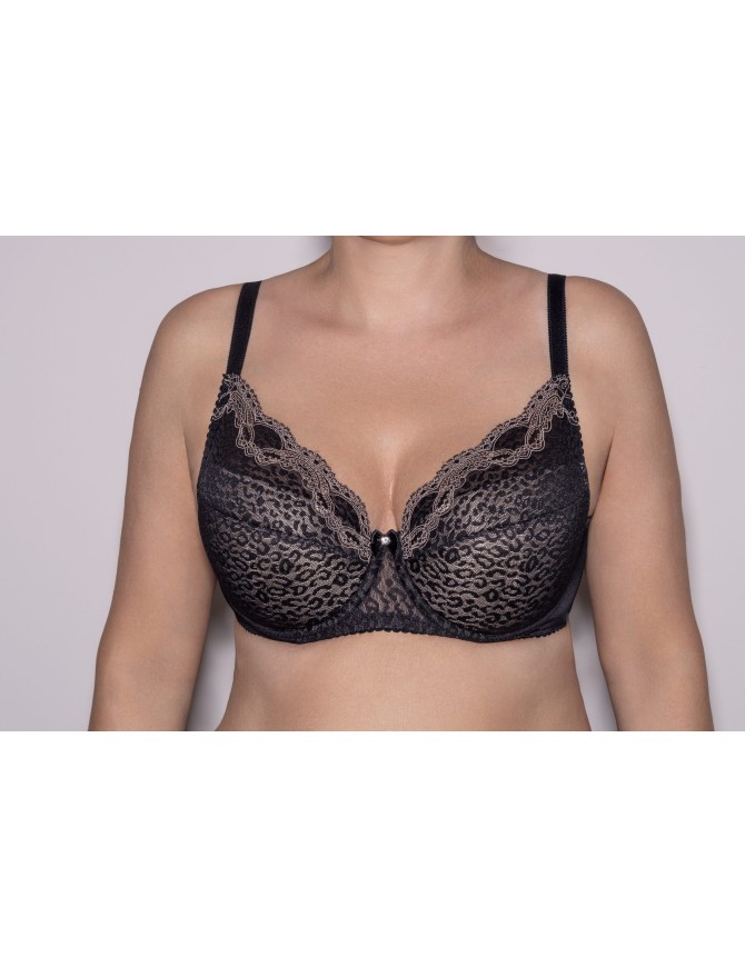 Бюстгальтер выполнен из эластичного кружева, кружевного полотна и полотна soft. Это специальная модель нижнего белья, предназначенная для женщин с пышной грудью. Он сочетает в себе комфорт, поддержку и визуальную привлекательность благодаря мягким поролоновым вставкам. Эти бюстгальтеры разработаны с учетом особенностей фигуры, чтобы не только придавать груди красивую форму, но и обеспечивать надёжную фиксацию.