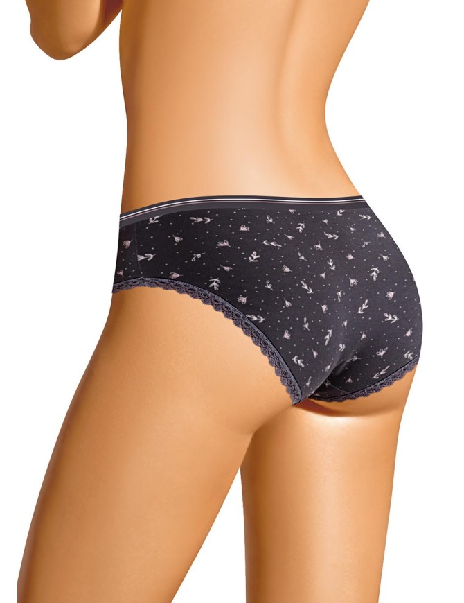 Трусы слипы из набивного хлопкового полотна с добавлением эластана комфортной посадки. По талии резинка, по ножке узкое кружево.