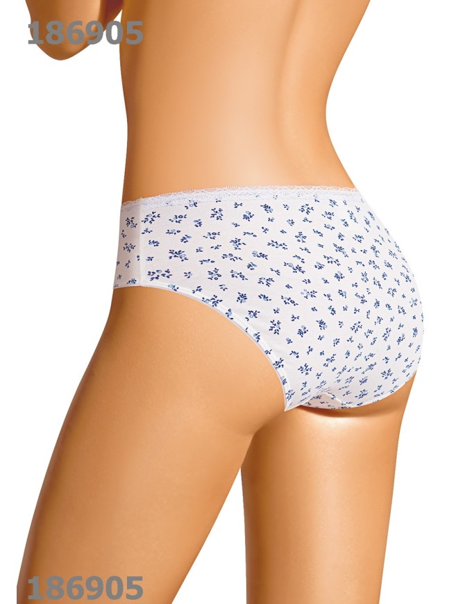 Трусы слипы женские из эластичного хлопкового полотна. Обработка краев по талии - кружево, по ноге - окантовка. По переду атласный бант.