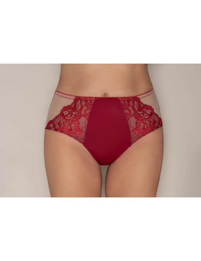Высокие трусики, выполнены из прятной к телу микрофибры и украшены кружевом, сочетающего в себе геометрический узор и легкое мерцание люрексовой нити новейшего поколения, и вставками из эластичной сетки. Очень комфортные и элегантные.