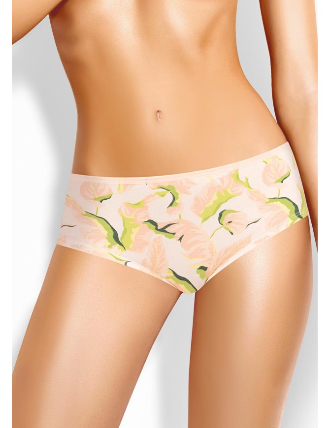 Трусы шорты женские из эластичного хлопкового полотна. Обработка краев по талии окантовочная резинка, по ноге - подгибка.