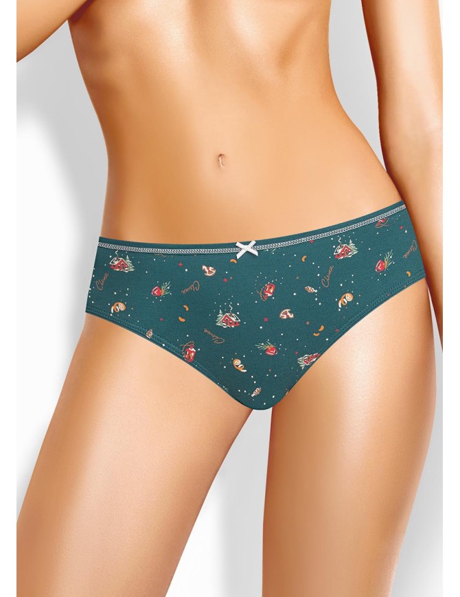 Трусы бикини женские из эластичного хлопкового полотна. Обработка краев по талии - окантовочная резинка с застилом, по ноге - полуокантовка. По переду атласный бант.