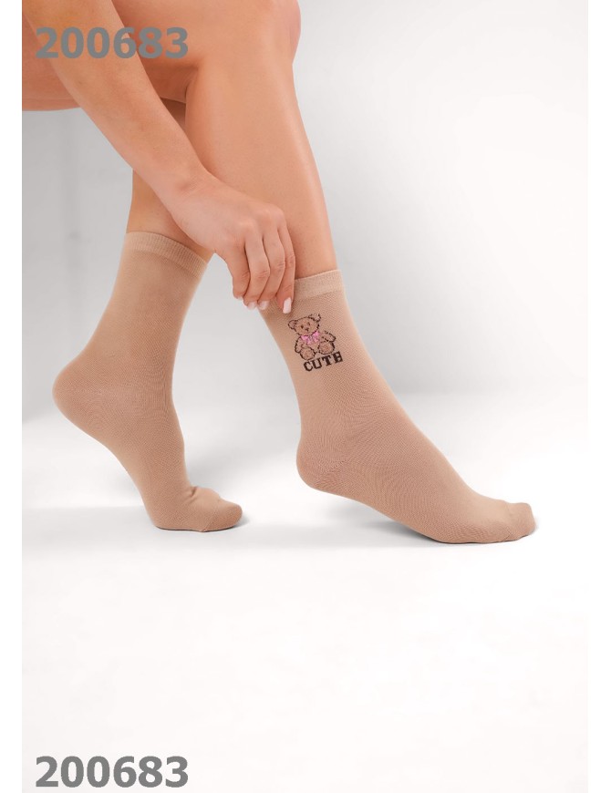 Женские носки однотонные с вышивкой медведя пряжей травка.