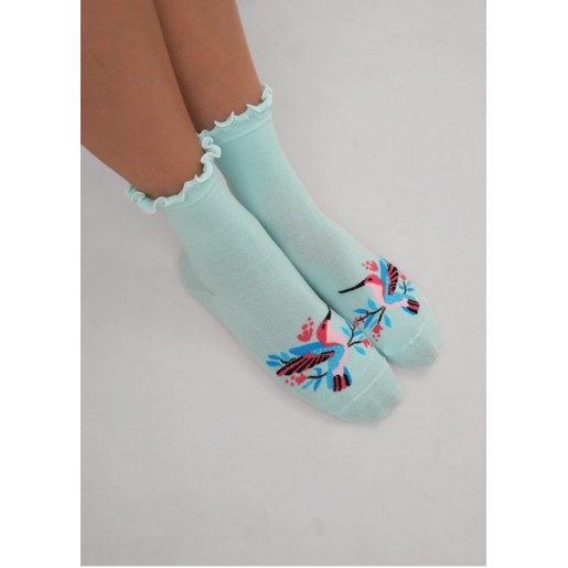 Женские носки с ажурной резинкой и рисунком птичка.