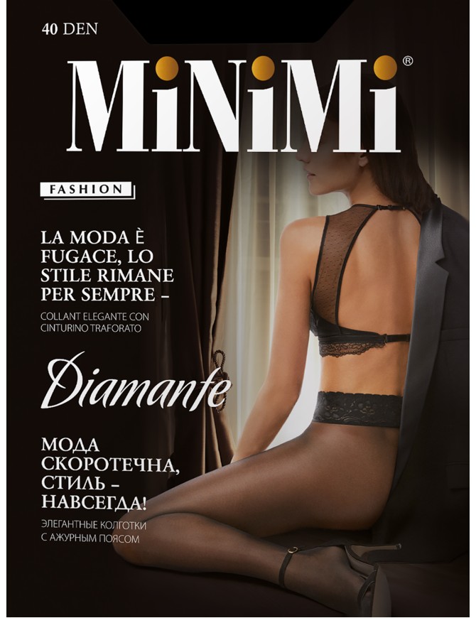Полуматовые прозрачные колготки плотностью 40 ден, создающие эффект обнаженной кожи (nudo), с элегантным ажурным поясом, комфортным плоским швом и гигиеничной ластовицей. Ступня модели формованная.
