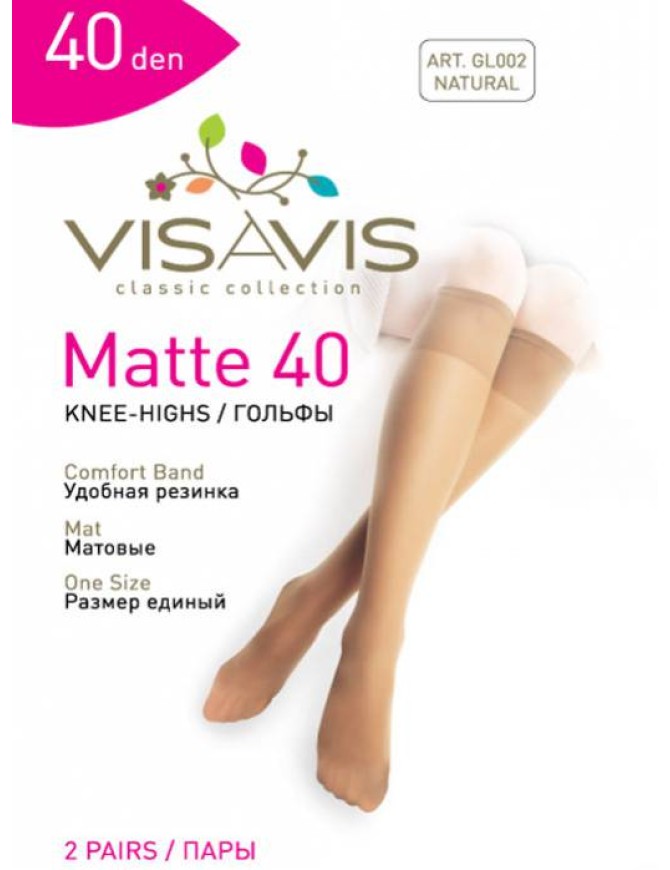 Матовые гольфы плотностью 40den с удобной резинкой. Полная свобода движений благодаря эластичности и широкой комфортной резинке.