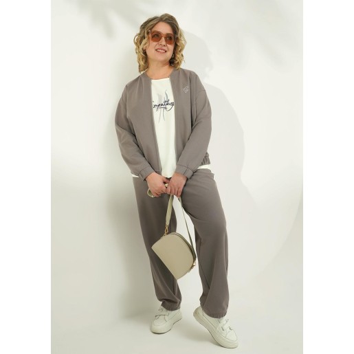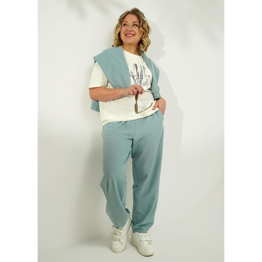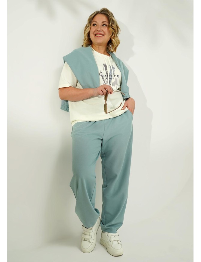 Брюки зауженные из трикотажного полотна пике. По талии притачной пояс на внутренней резинке. По низу брюк подгибка, на спинке с внутренней резинкой. Боковые карманы с отрезным бочком.