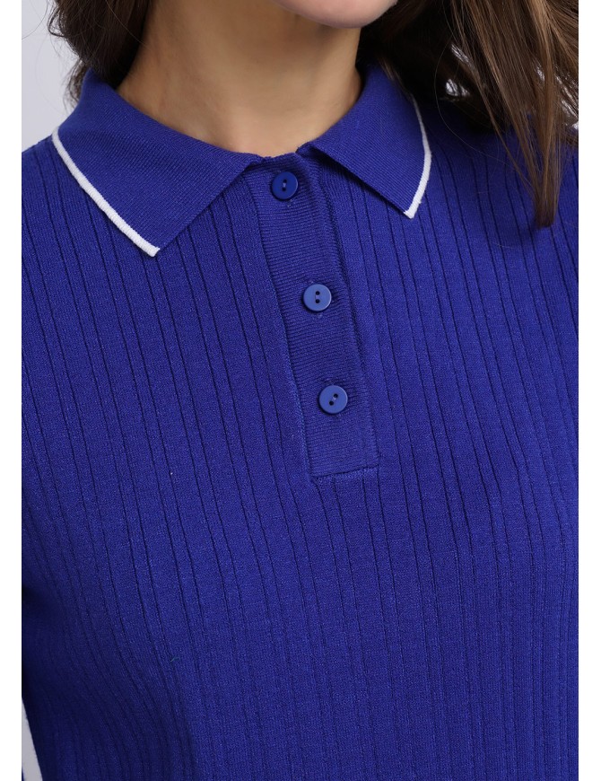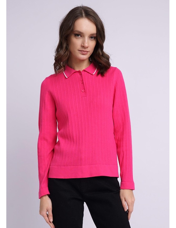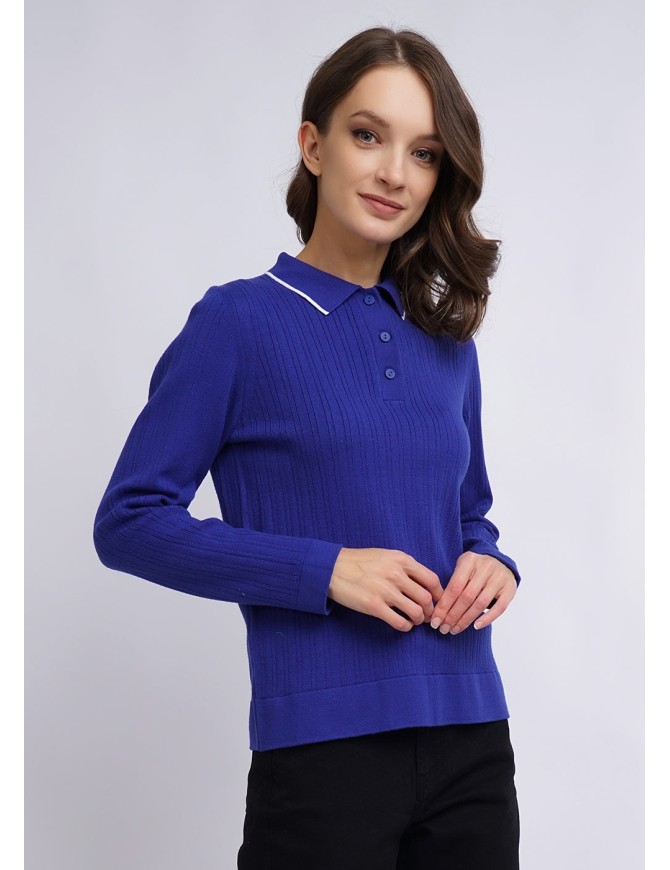 Джемпер-поло из вискозной пряжи. Длинный, втачной рукав. Планка с застежкой на 3 пуговицы.