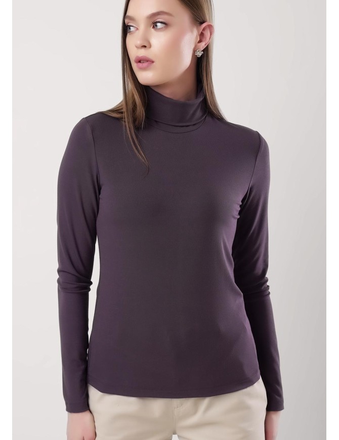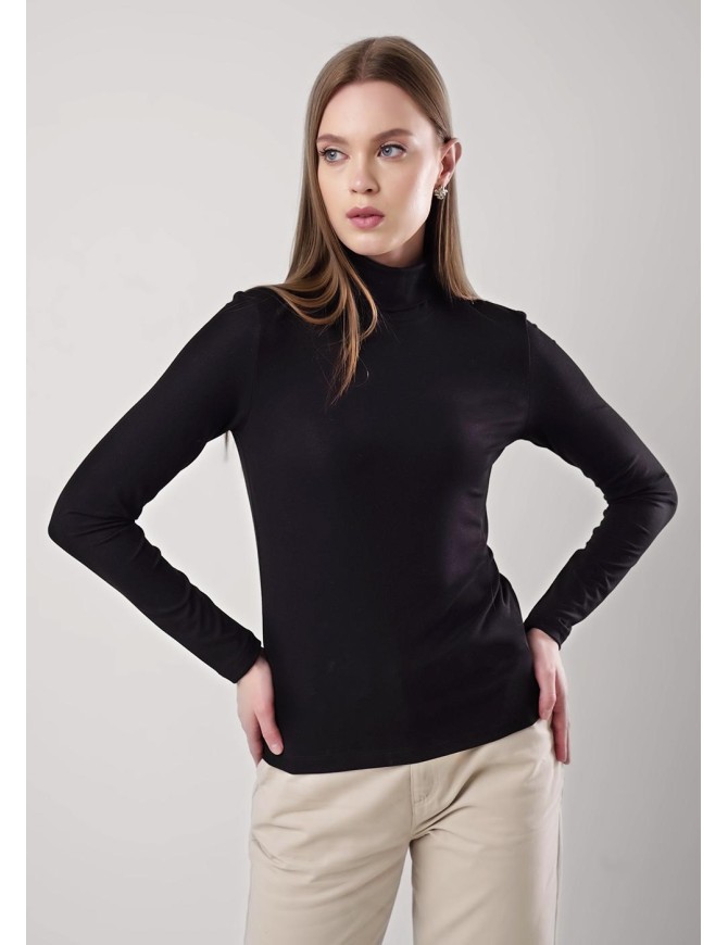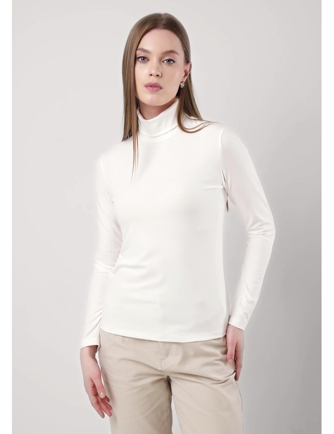 Водолазка из трикотажного полотна рибана с вискозой. Длинный втачной рукав. По горловине стойка.