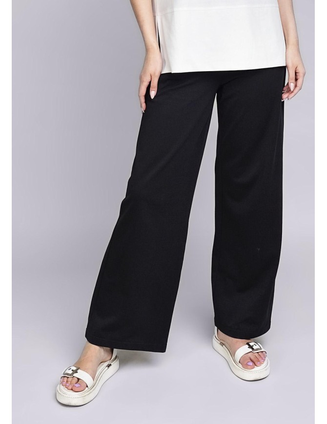 Женские широкие брюки из ткани пике на поясе с внутренней резинкой. Модель выполнена из прочного, износостойкого полотна, которое хорошо тянется, не теряет цвет и форму даже после многих стирок. Брюки дополнены по поясу фирменной нашивкой. Легкие брюки отлично сочетаются с любым верхом, будь то футболка, джемпер или майка.