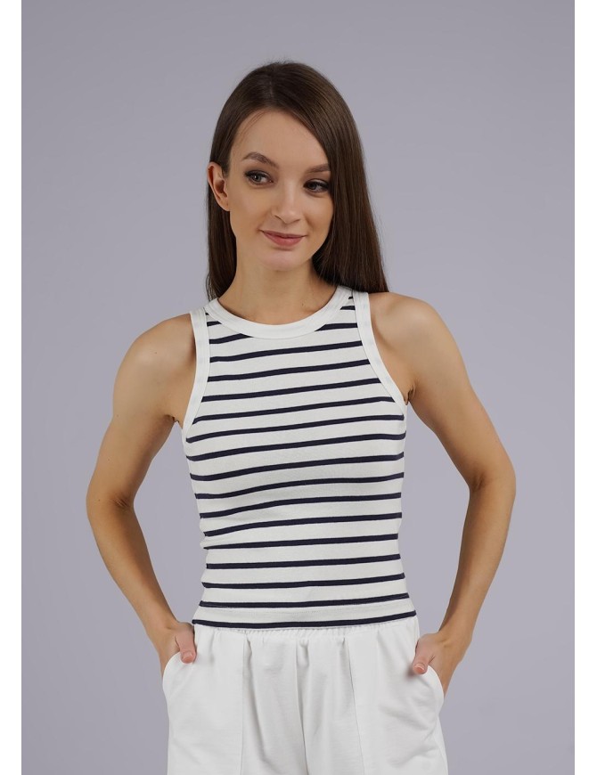 Майка для дома из из трикотажного полотна рибана.Широкие бретели. Округлая горловина. По горловине и пройме окантовка.