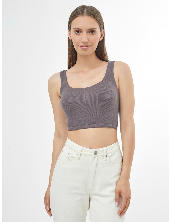 Стильный женский топ из рибаны – в тонкий рубчик. Прилегающий силуэт подчеркивает женственность фигуры. Отсутствие декоративных деталей делает этот топ универсальным и максимально комфортным.