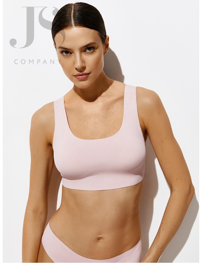 Базовый топ на широких бретелях с закрытой спиной и съемными формованными вкладышами. Подчеркивает грудь, придает ей изящную округлую форму и создает женственный силуэт. Изготовлен из гладкой микрофибры по прогрессивной технологии с использованием плоского клеевого шва и термоклеевой обработки края. Материал обладает высокой воздухопроницаемостью, приятно ощущается на теле, хорошо сохраняет форму и цвет. Передняя часть топа на подкладке дополнена съемными вкладышами. Топ превосходно облегает благодаря мягкой усиленной резинке, обеспечивает комфортную поддержку и создает эффект «второй кожи».