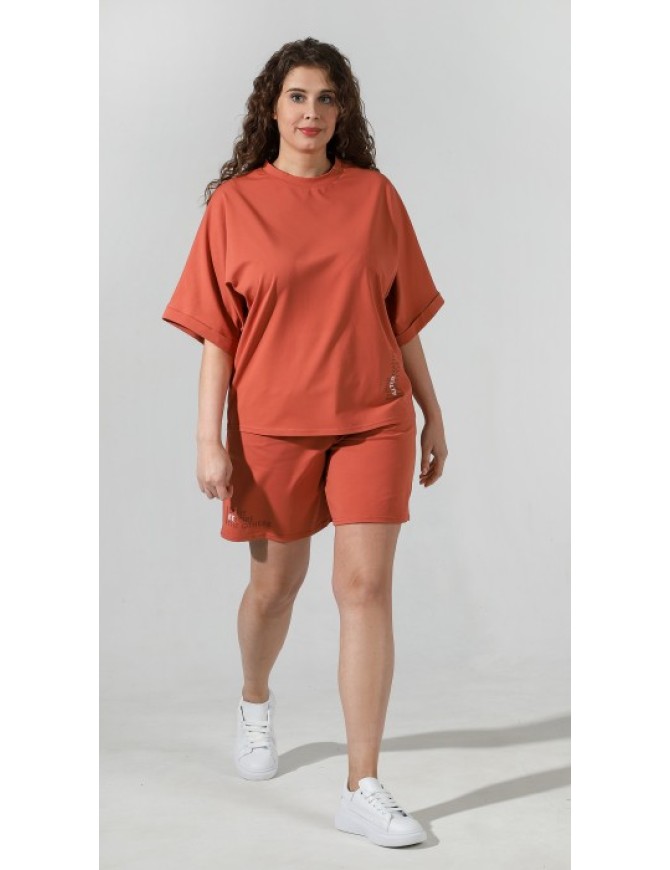 Футболка – свободного покроя, с цельнокроеными рукавами длиной до локтя, горловиной овальной формы, обработанной втачной планкой. Нижние срезы рукавов обработаны манжетами-отворотами.