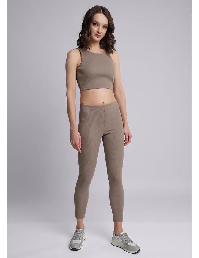Универсальный костюм из кашкорсе для занятий спортом или отдыха. Топ на широкой бретели. Леггинсы с широким поясом на внутренней резинке.