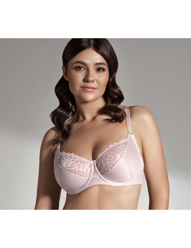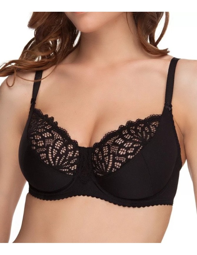 Бюстгальтер из трикотажного полотна и эластичного кружева с необычной геометрической композицией. Модель выполнена на каркасах и понравится девушкам, которые ценят комфорт, но при этом предпочитают видеть в своем гардеробе вещи с оригинальным дизайном. Широкая спинка, застежка на двух крючках.