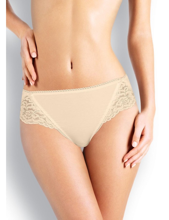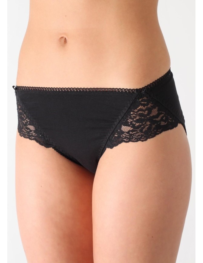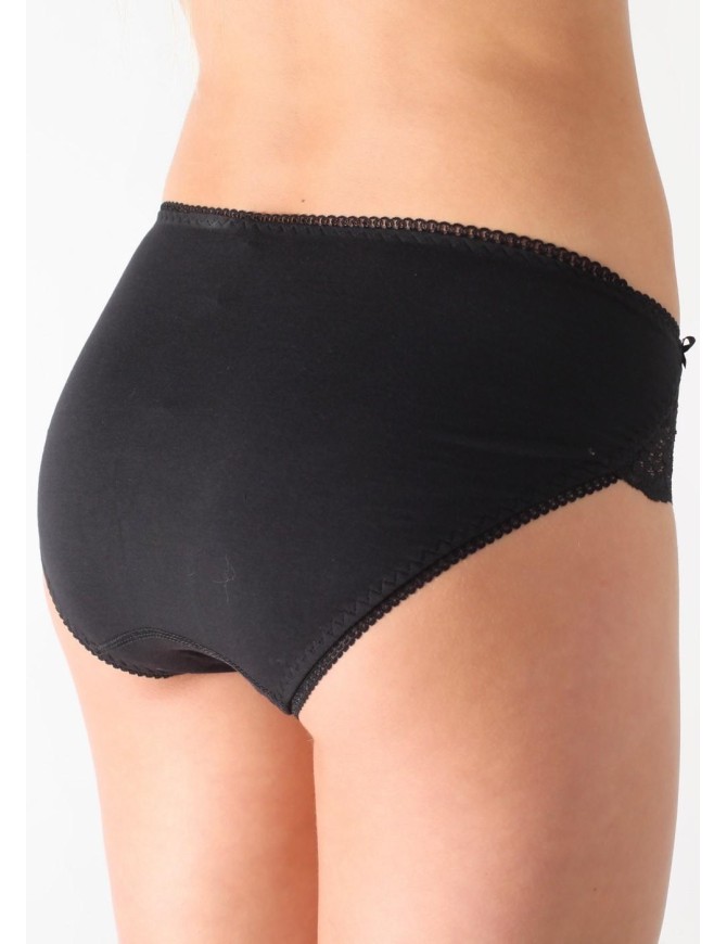 Классическая модель комфортной посадки из однотонного хлопкового полотна. По ножкам и талии - резинка с фестоном.В боковых швах - симметричные кружевные вставки