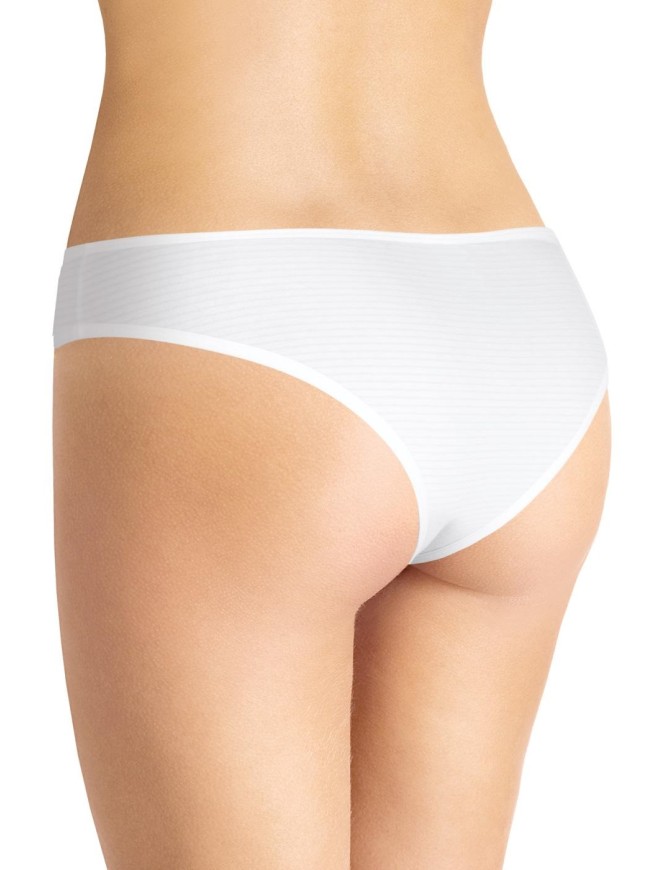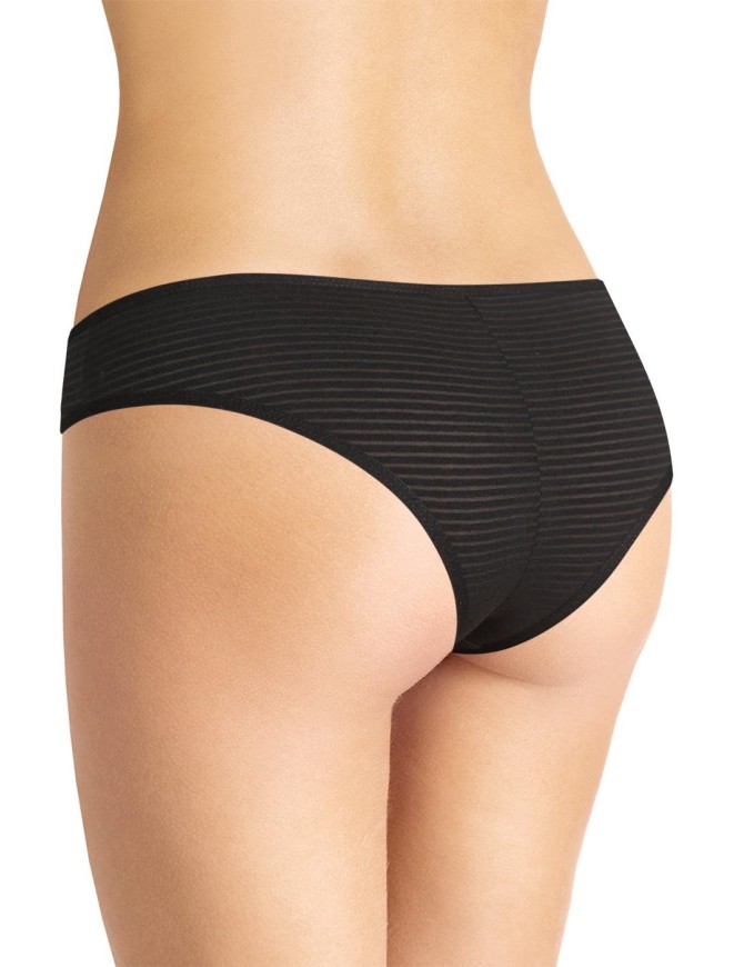 Базовая модель - бразилиана на трикотажном эластичном полотне с фактурной горизонтальной полоской. Окантовка по талии и ноге. Фирменный логотип.