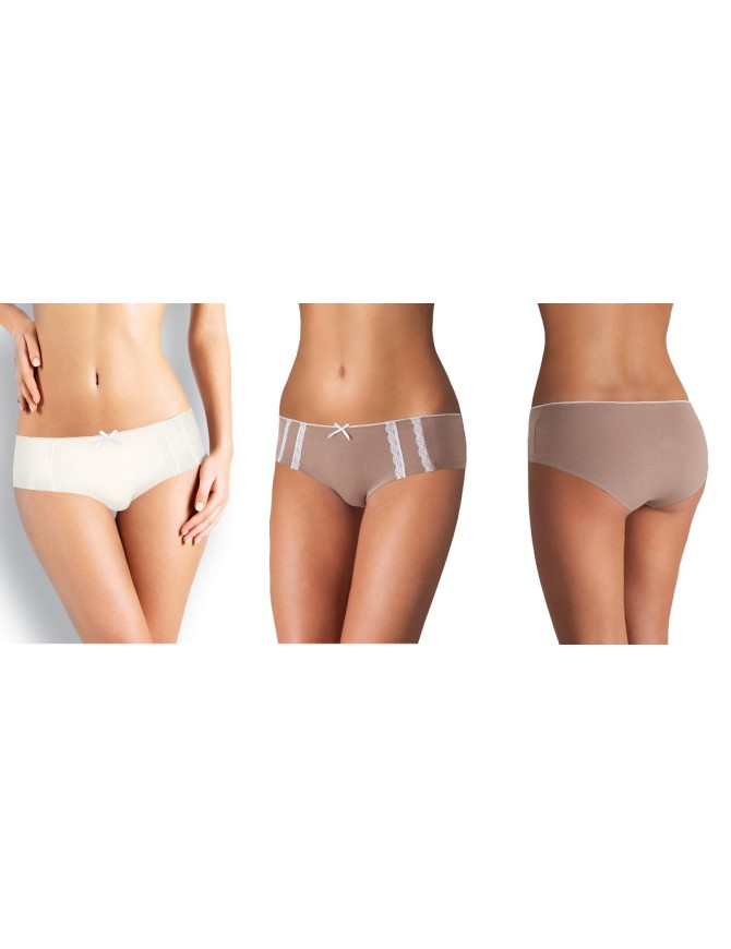 Шорты однотонные, по резам обработаны резинкой с фестоном и декорированы кружевом