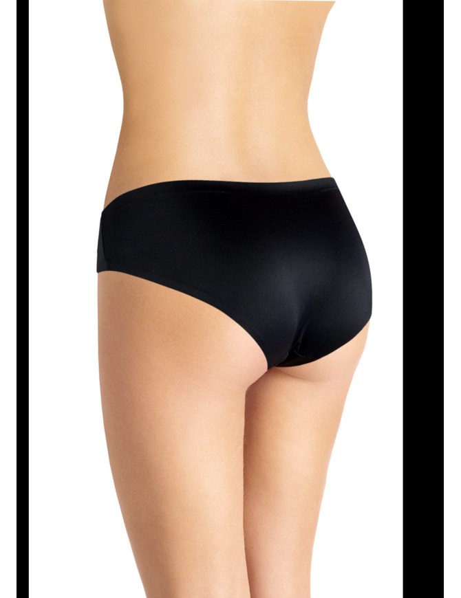 Бесшовные трусы бикини комфортной посадки. По талии широкая, кружевная резинка.