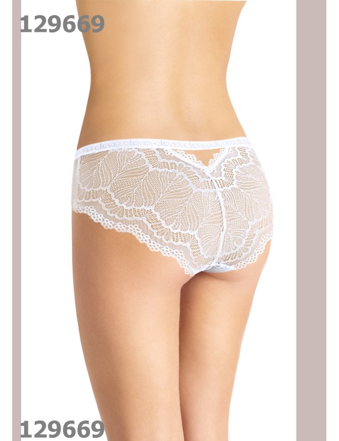 Шорты комфортной посадки из хлопкового полотна с эластаном и эластичного кружева по спинке, переходящего на деталь переда. По талии выполнена обработка жаккардовой резинкой, завершает дизайн фигурный вырез на спинке по центру.