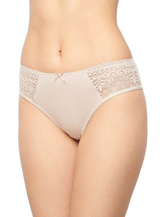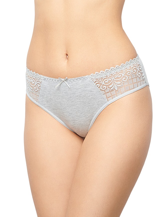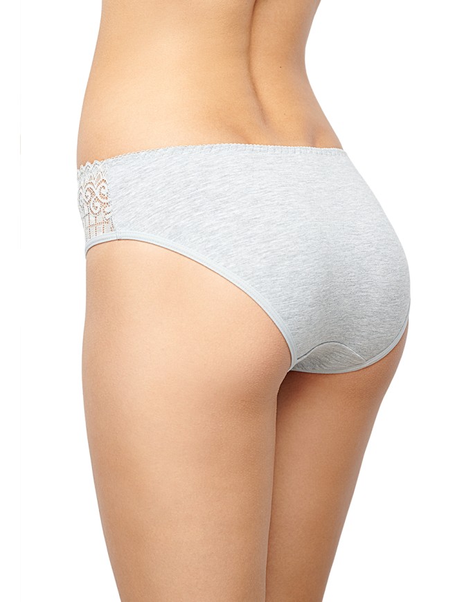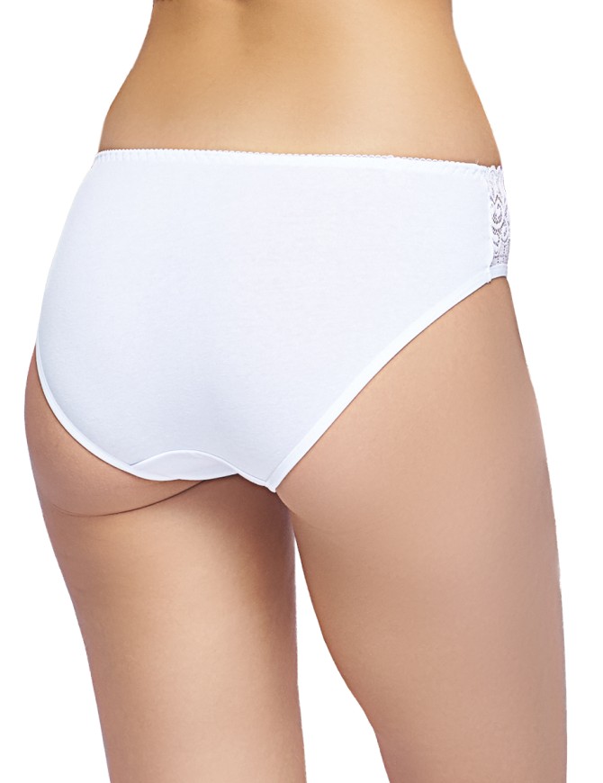 Трусики - слип из облегченного микроволокна. Передняя деталь с симметричными кружевными вставками по бокам, задняя часть - полностью из хлопка. Ластовица дублирована хлопком.