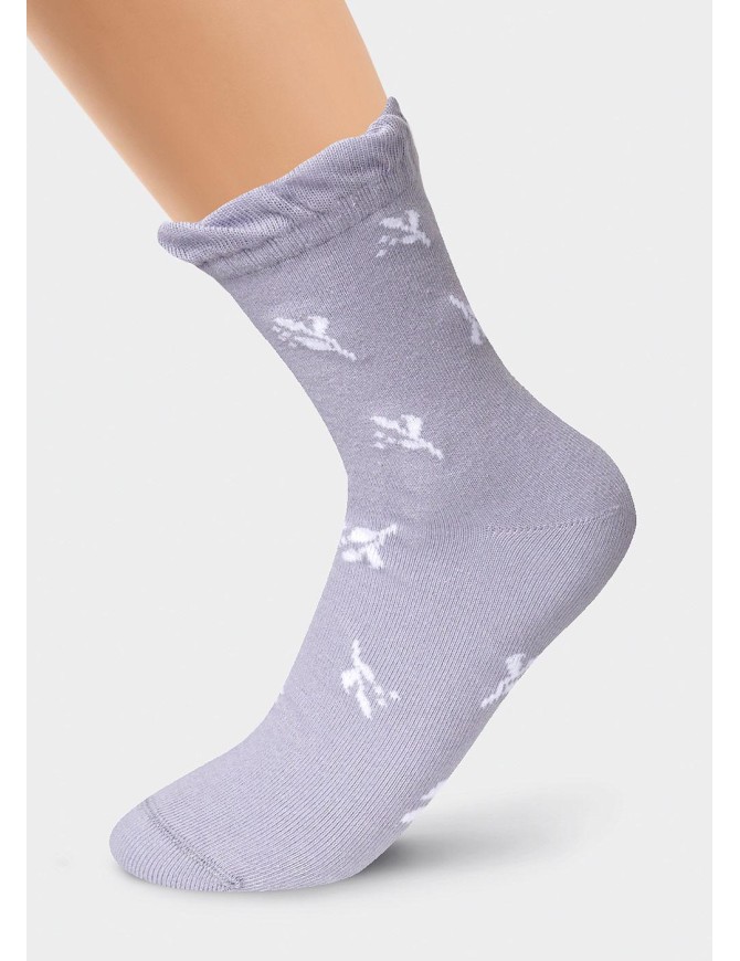 нежные женские носки с резинкой в виде рюши, с небольшим цветочным рисунком и надписью по следу "НЕЖНАЯ"