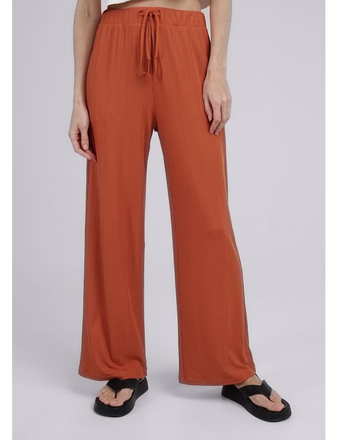 Брюки широкие из трикотажного полотна. По талии отрезной пояс на резинке с завязками. Боковые карманы с отрезным бочком.