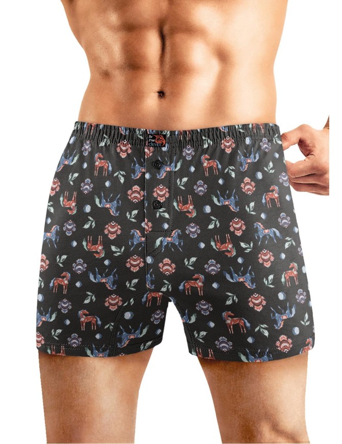 Боксеры комфортной посадки выполнены из оригинального полотна в авторскую набивку. Трусы дополнены пуговицами и жаккардовым логотипом.