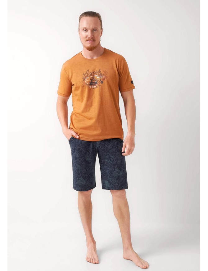 Набор для дома состоящий из футболки и шорт. Футболка из фактурного полотна флам с округлым вырезом горловины и коротким рукавом. Шорты из плотной кулирной глади в набивку на эластичном поясе с функциональными карманами и шнуром.