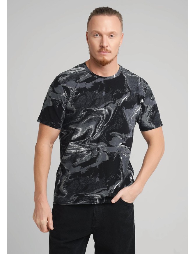 Футболка из дышащего хлопкового полотна с округлой горловиной. Модель с абстрактной дизайнерской набивкой. Прекрасно впишется в гардероб и подойдёт к любому низу. В данной футболке можно отправиться на работу или прогулку с друзьями.