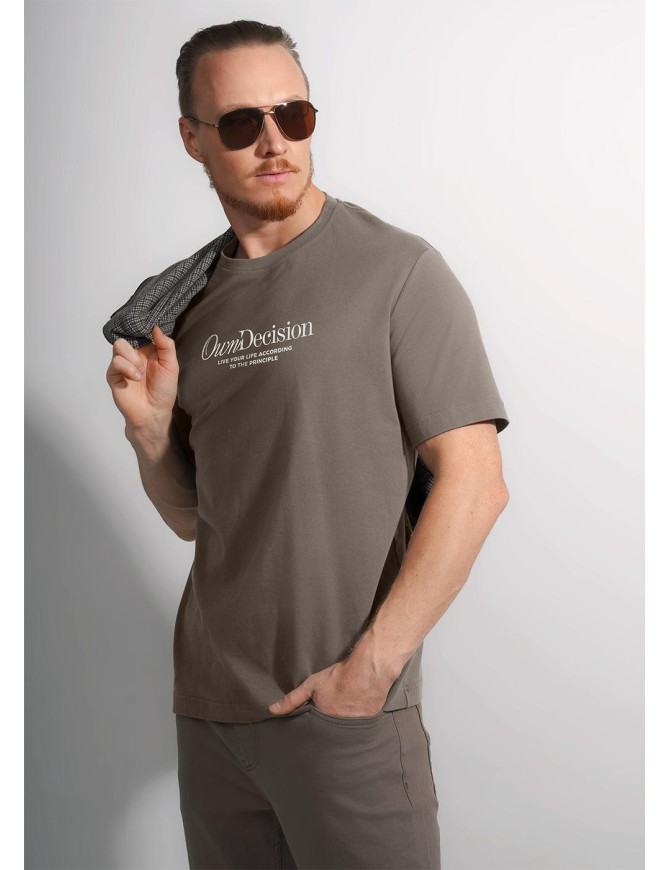 Футболка мужская, из хлопкового полотна, круглым вырезом горловины и коротким втачным рукавом. Модель дополнена имиджевой фурнитурой и оригинальным дизайнерским принтом, который разнообразит любой образ и подойдет на каждый день.