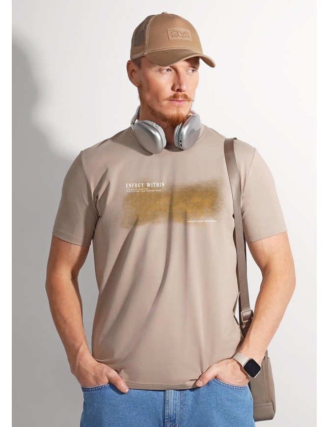 Футболка мужская с круглым вырезом горловины из хлопкового полотна. Футболку дополняет принт по груди и имиджевая фурнитура. Отлично подойдет для прогулок и встреч с друзьями.