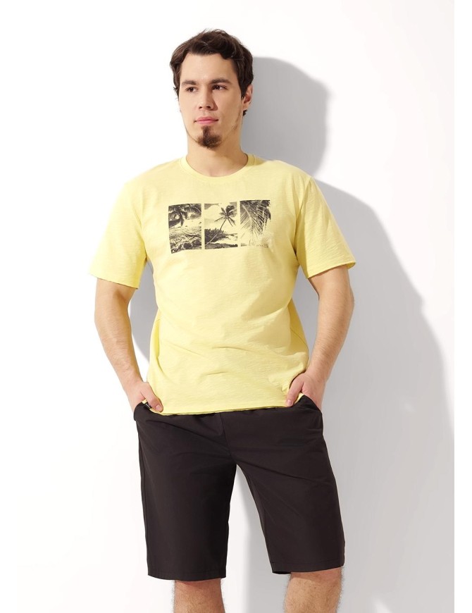 Мужской комплект для дома, состоящий из футболки и шорт. Футболка с круглым вырезом горловины, открытыми срезами и стильным принтом выполнена из фактурного трикотажного полотна "флам". Шорты на эластичном поясе изготовлены из поплина и дополнены функциональными карманами и шнуром. Комплект из мягкой дышащей ткани прекрасно подходит в качестве одежды для дома и отдыха. Рекомендуемая температура стирки - до 40 градусов, температура утюжки - до 170 градусов.