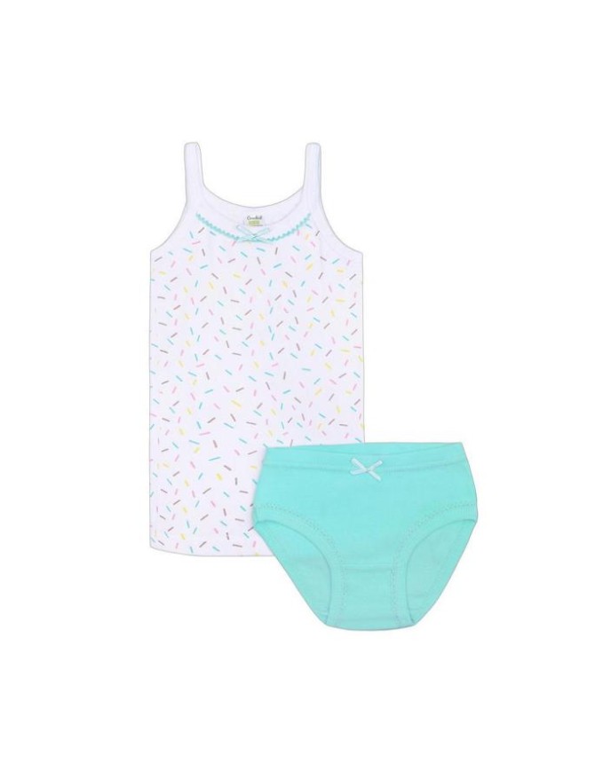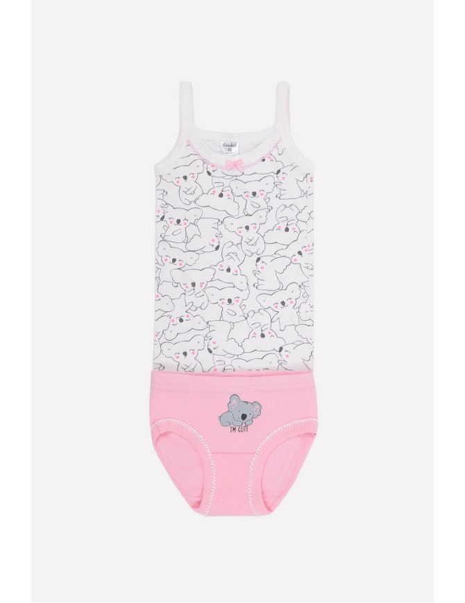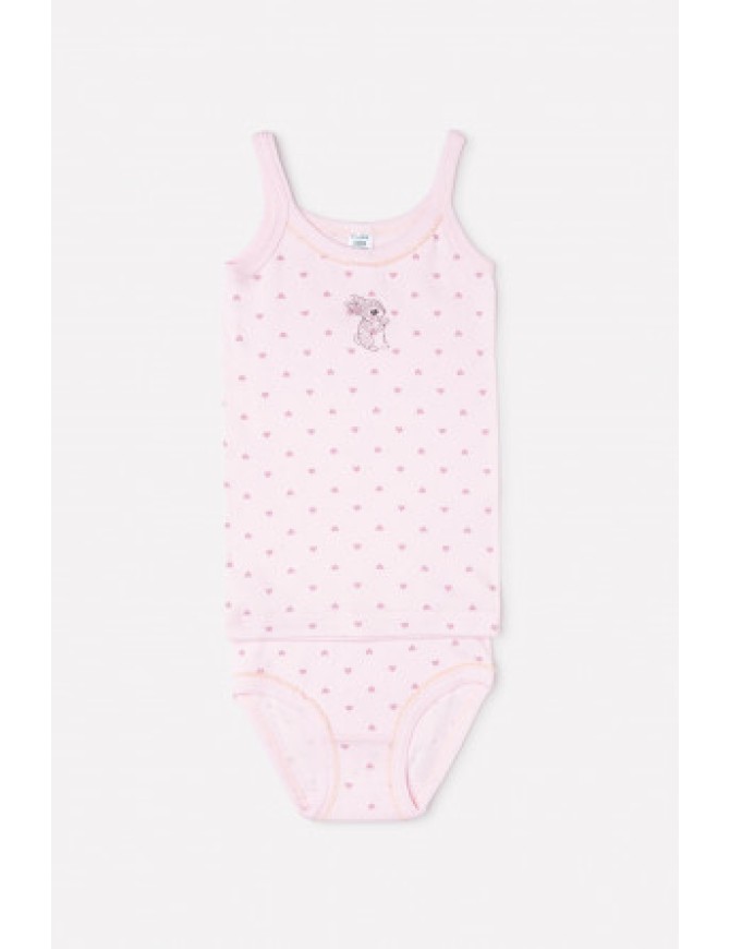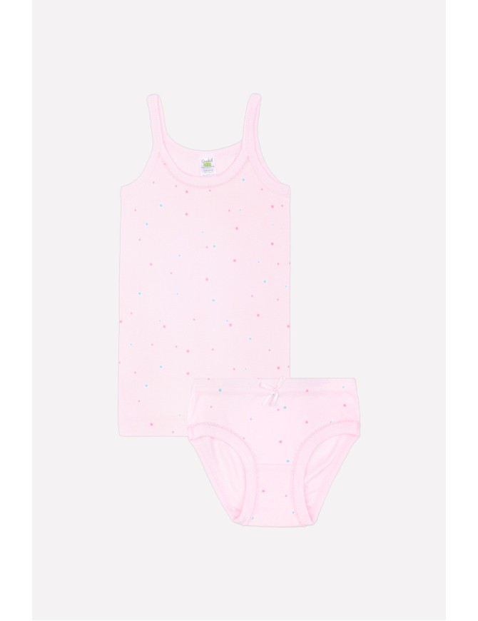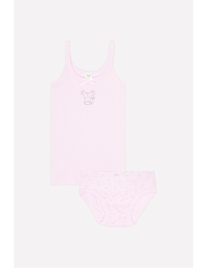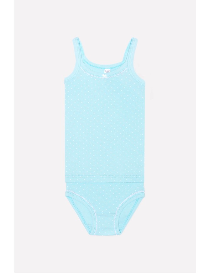 Комплект белья для девочки из трикотажного хлопка. Бесшовная майка на бретелях и трусы с двойной ластовицей. Пояс на эластичной резинке.
