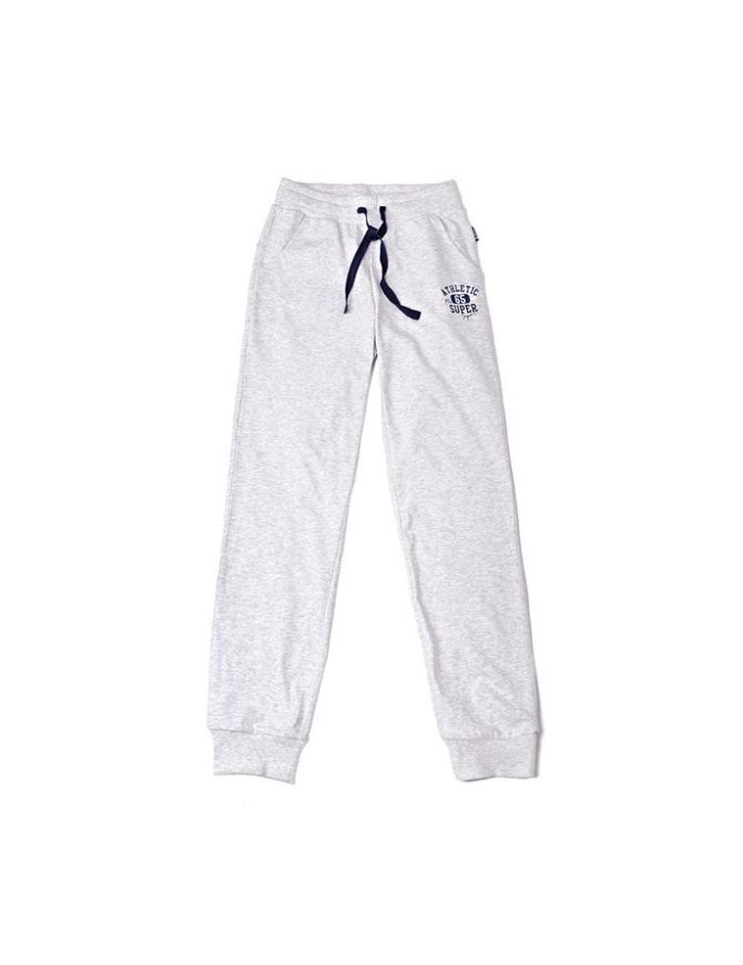 Брюки для девочки из однотонного или меланжевого супрема, пояс и манжеты из кашкорсе, в поясе эластичная тесьма, кулиса с киперной лентой, боковые карманы, кокетка на задней половинке, печать на передней.