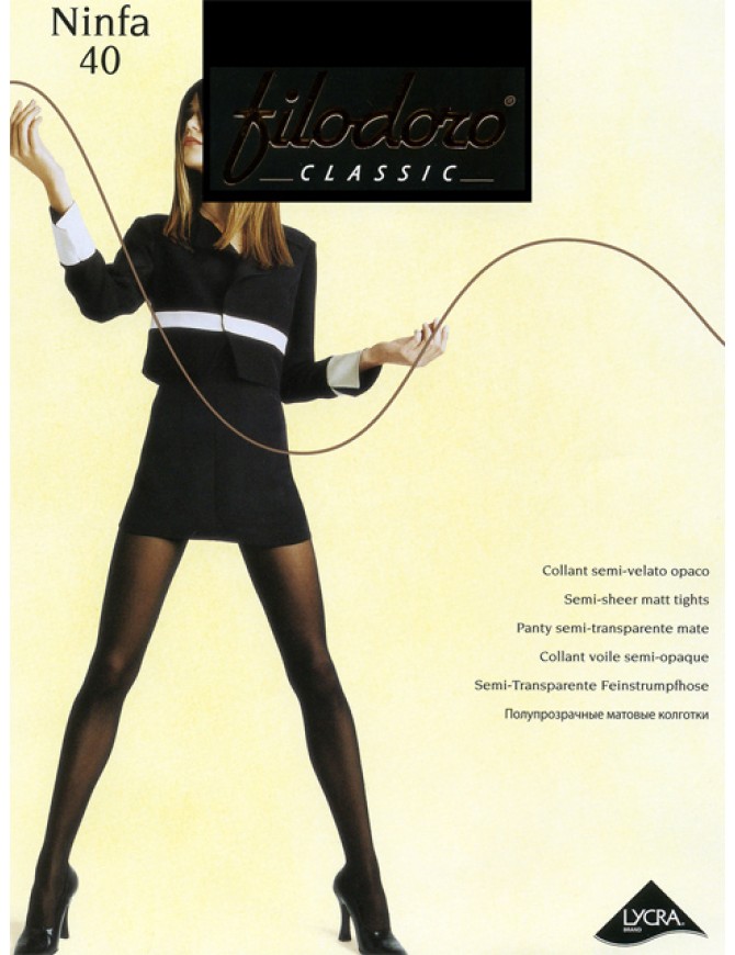 Прозрачные шелковистые колготки с лайкрой, формованные, плотностью 40 ден, с широким комфортным поясом, плоским швом, ластовицей и укрепленным мыском.
