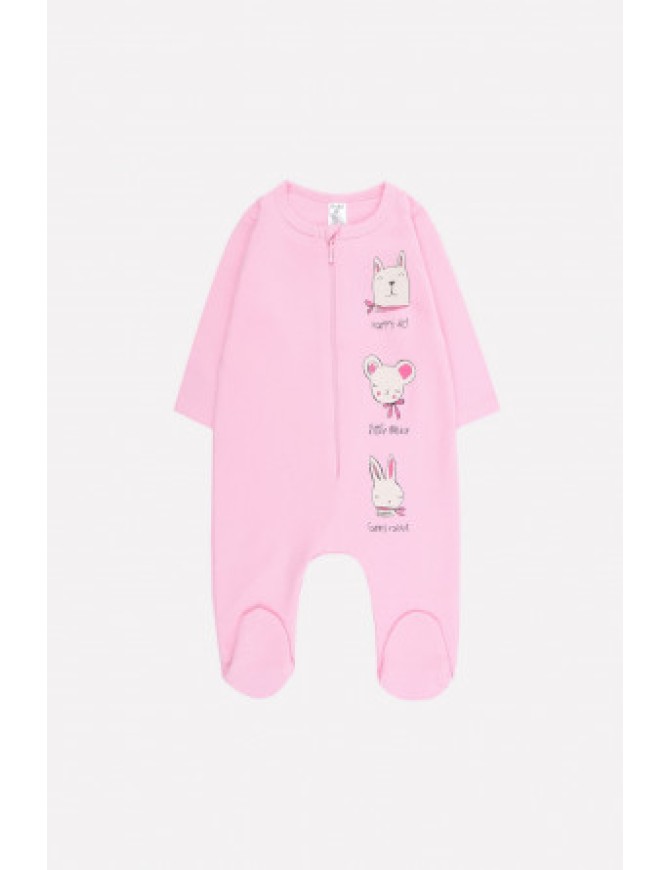 Комбинезон из однотонного хлопкового футера. Длинные рукава, спереди застежка-молния с защитой для подбородка. Спереди принт.