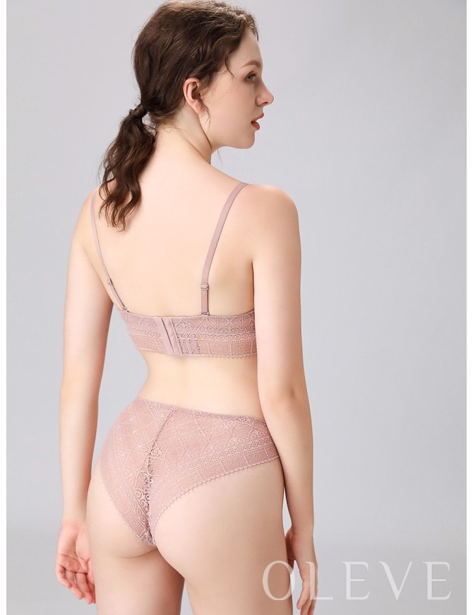 Комплект нижнего белья OLEVE из кружева. Бюстгальтер с уплотненной чашкой, с косточками. Трусы слипы, низкой посадки