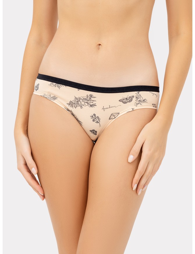 Хлопковые слип-бикини из натурального, гипоаллергенного, дышащего полотна. Линия талии занижена. На верхнем срезе – тонкая эластичная тесьма, по ножкам – шов вподгибку. Отличный повседневный вариант!