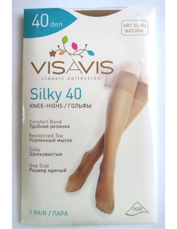 Гольфы шелковистые плотностью 40den с эластичной и комфортной резинкой, обеспечивающей отличное облегание. Усиленный мысок.