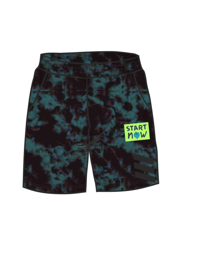 Шорты из футера в стильную набивку тай-дай. Карманы боковые, в поясе резинка. Украшена модель жаккардовой нашивкой.