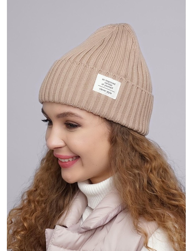 Шапка женская с отворотом, декорирована нашивкой логотип. Идеально подойдёт для весны- осени.