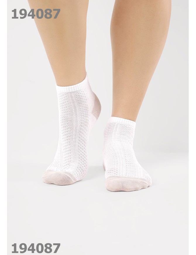 Женские носки плетение ажур, с выделенным цветом мыском и пяткой