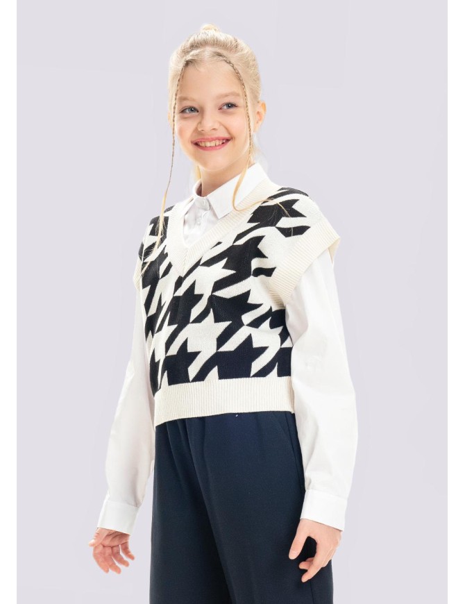 Стильный жилет для девочки из хлопка с акрилом трендовой расцветке - гусиная лапка. Хит продаж!