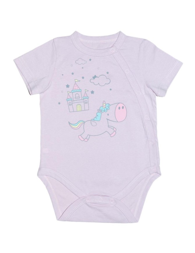 Полукомбинезон(боди)-застежка ассиметричная на переде слева(справа) и по низу изделия на кнопки.Рукав втачной короткий.Печать по переду.Горловина,край борта и низ изделия окантованы.