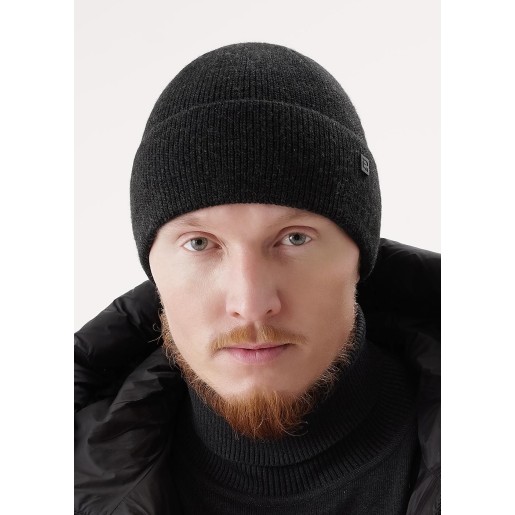 Шапка мужская с отворотом, с подкладом из флиса. Выполнена из высококачественной пряжи, декорирована стильной нашивкой. Станет не только отличной защитой от холода, но и модным аксессуаром.