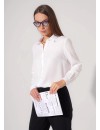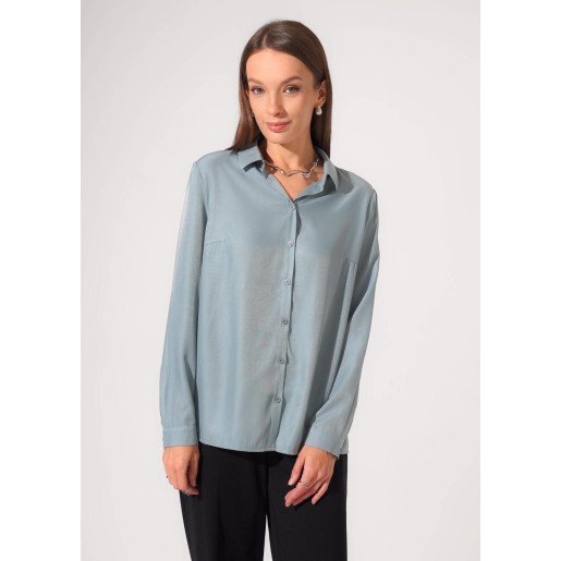 Блузка среднего объема из текстильного полотна штапель. Отложной воротник со стойкой. Цельнокроеная планка с застежкой на пуговицы. Втачной рукав, внизу притачной манжет с застежкой на пуговицу. Низ прямой, по бокам разрезы.